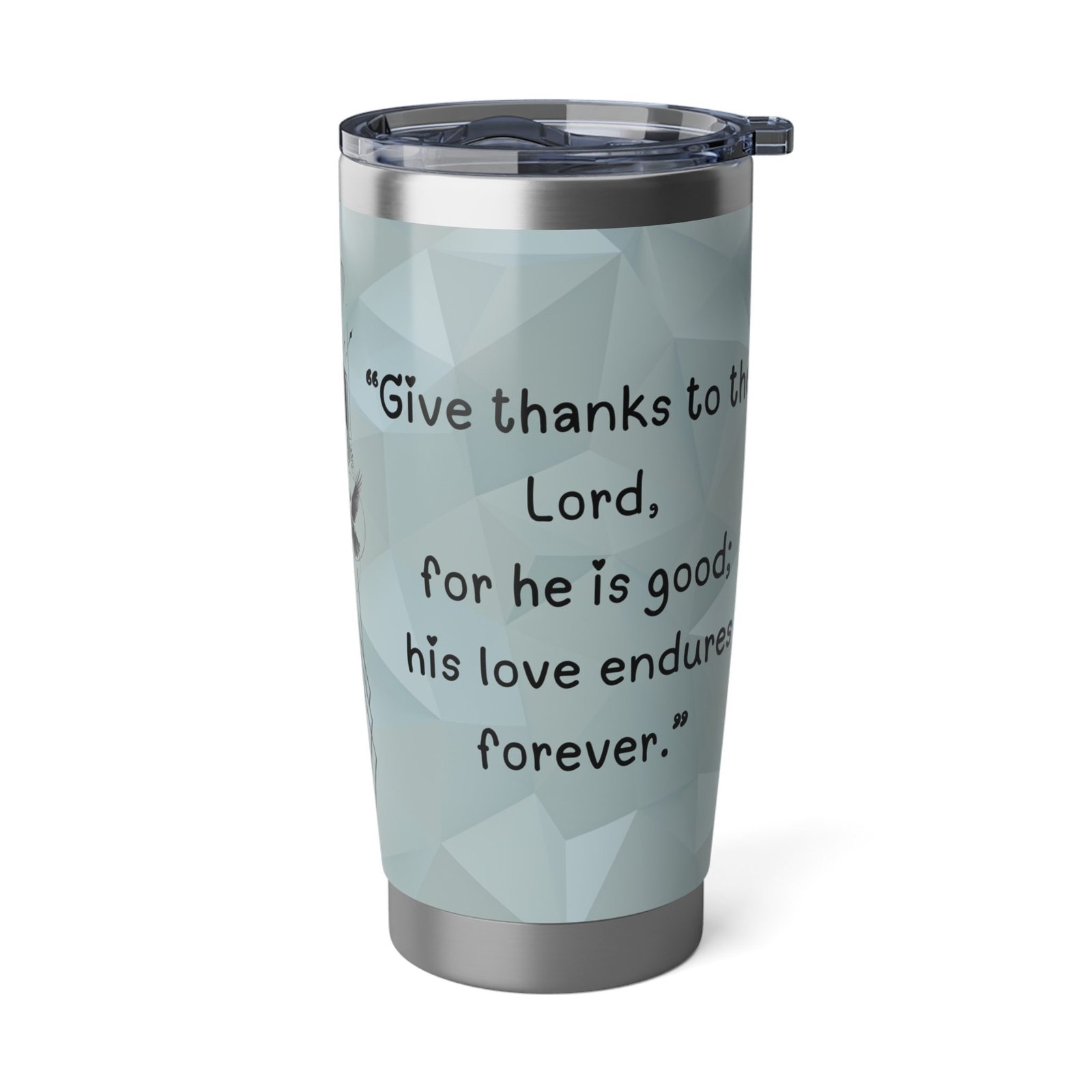 The 20oz Stainless Steel Travel Tumbler is designed to be more than just a beverage container; it is a portable sanctuary of inspiration for the modern believer. At IZEEFY, we believe that the objects we carry should reflect our deepest values, facilitating Meaningful Gifting and the creation of Lasting Memories through spiritual encouragement. This premium insulated cup features a high-definition, full-wrap design inspired by the timeless Bible verse: “Give thanks to the Lord, for he is good; his love endures forever.” Whether you are beginning a morning meditation, heading to a high-intensity workout, or navigating a busy office day, this tumbler serves as a steady reminder of gratitude and grace.