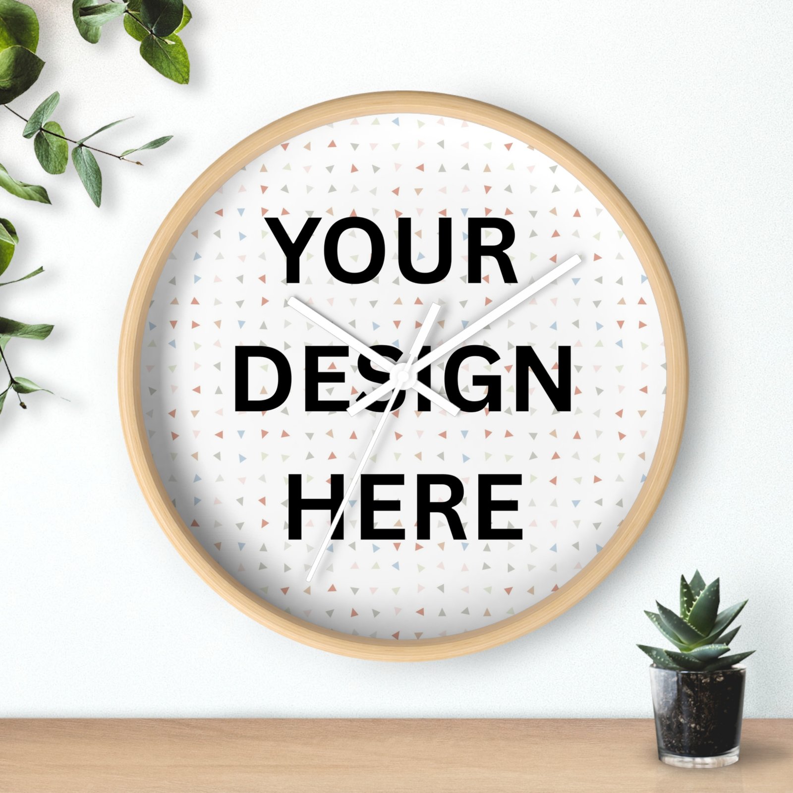 This minimal custom wall clock brings a warm, calming rhythm to your living space. Designed with a softly grained wood frame and a clean plexiglass clock face, it allows your personalized photo or text design to stand out while maintaining a minimalist aesthetic. The silent, non-ticking metal mechanism keeps accurate time without distractions, making it ideal for bedrooms, living rooms, studios, or workspaces. Easy to hang with a built-in hook and powered by a single AA battery, this personalized wall clock blends quiet functionality with modern home décor. Bright, fade-resistant printing ensures your chosen artwork stays vivid and beautiful day after day.