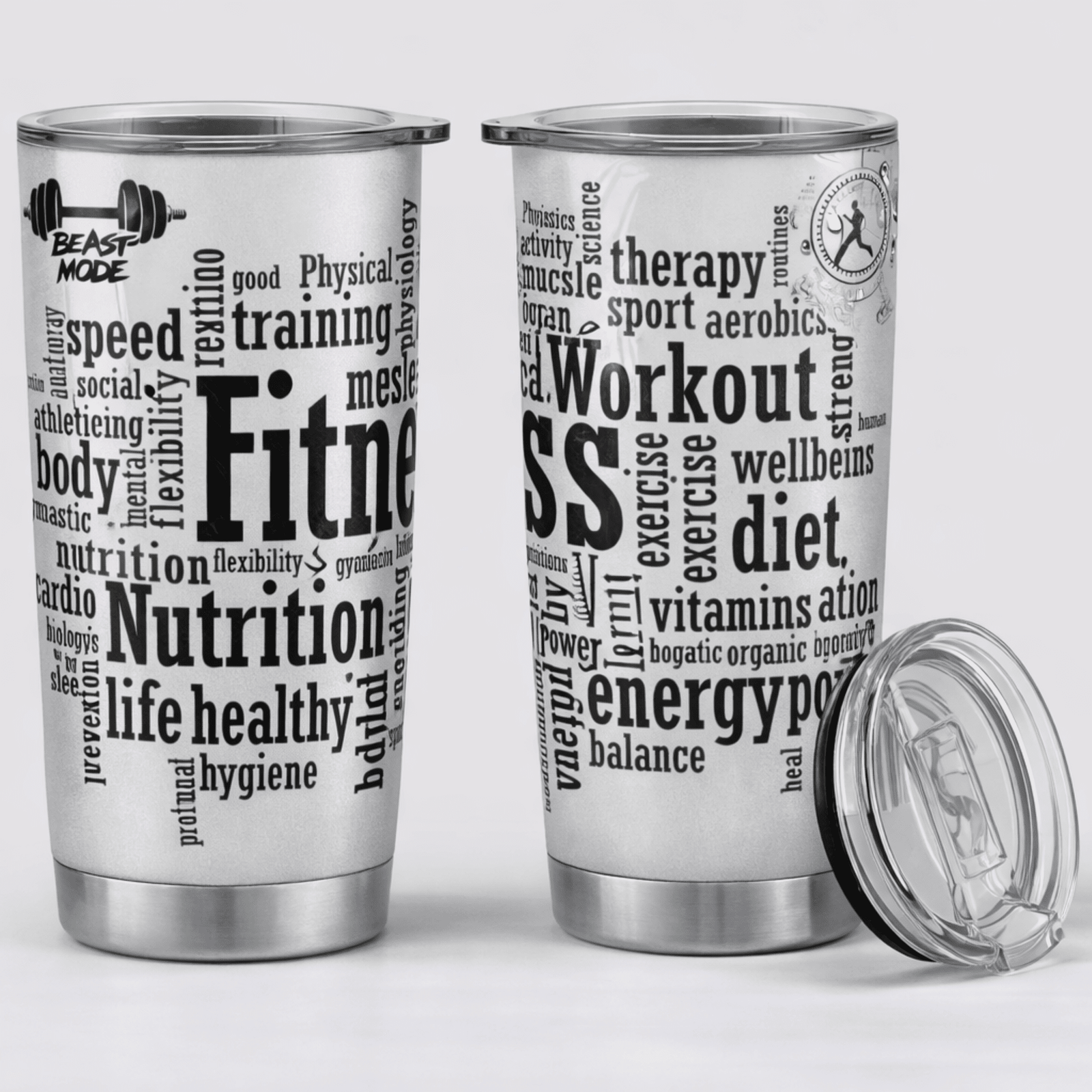 The Fitness Inspired 20oz Stainless Steel Travel Tumbler is engineered to be more than a simple hydration vessel; it is a portable source of motivation for the modern athlete. At IZEEFY, we believe that the tools you use for your health should reflect your dedication, facilitating Meaningful Gifting and the creation of Lasting Memories through intentional design. Featuring a bold, high-definition word cloud of workout, nutrition, and wellness terms, this tumbler serves as a constant reminder of your goals. Whether you are hitting a personal best at the gym, navigating a demanding morning at the office, or exploring the outdoors, this tumbler keeps your favorite beverages at the perfect temperature while fueling your drive.