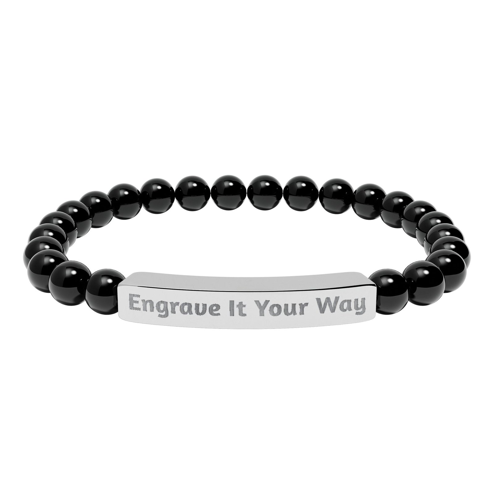 Personalized Stone Bead Bracelet – Custom Engraved Bar Bracelet for Women & Men