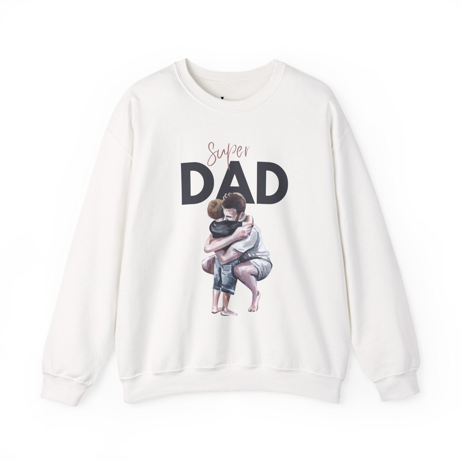 Shop the Super Dad Crewneck Sweatshirt. A premium unique gift for fathers. Features a heartwarming hug design for meaningful gifting and lasting memories.